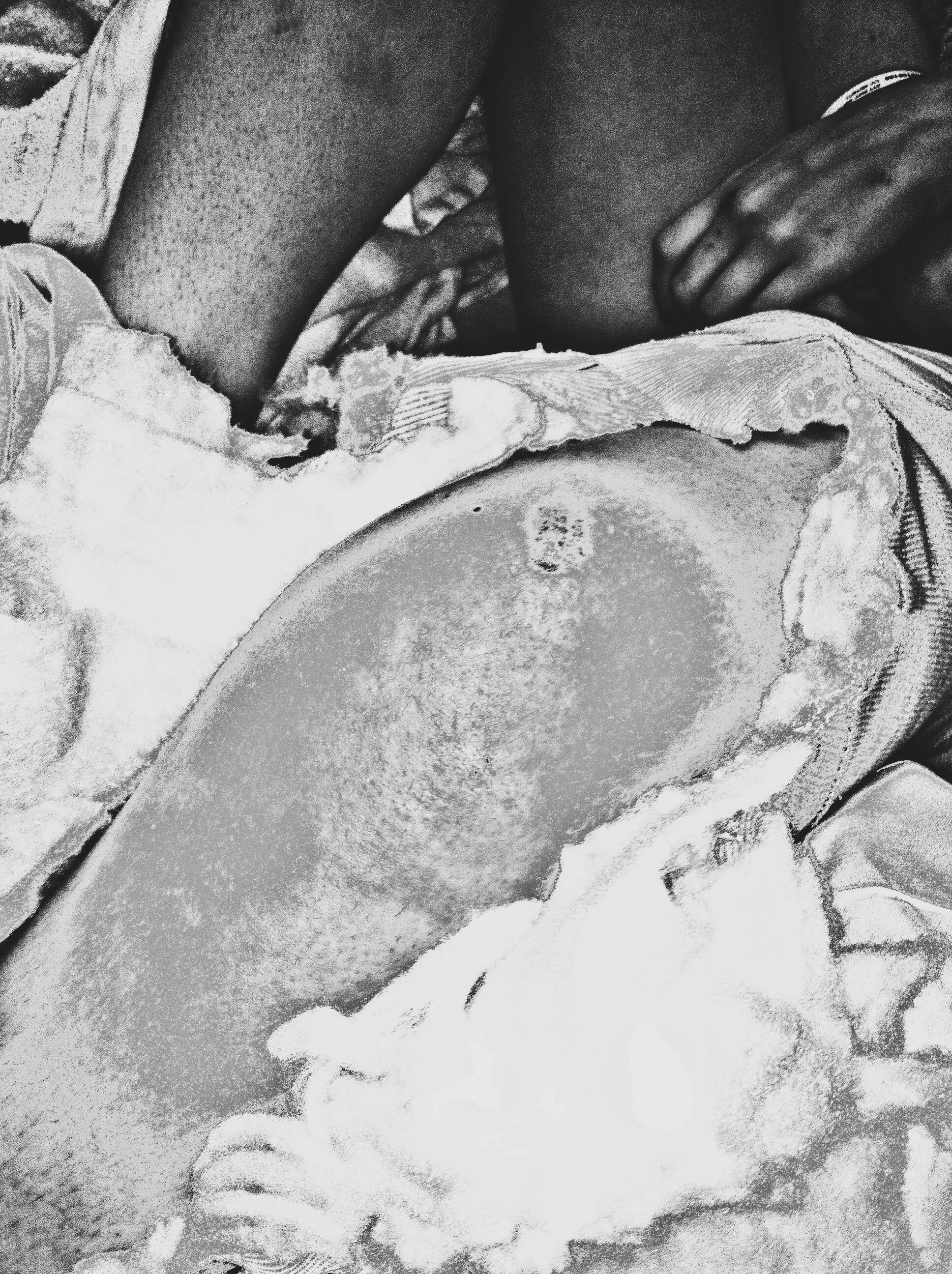 Mixed media and relief print.5 x 5 in. each.Imitating the appearance of X-ray images, this series of frames grants permission to peek into bodily spaces and fabricated health. Past the neon exterior, hidden in plain view, are inflamed lungs, a rhinestone heart, broken teeth, and a knee held together with pins.