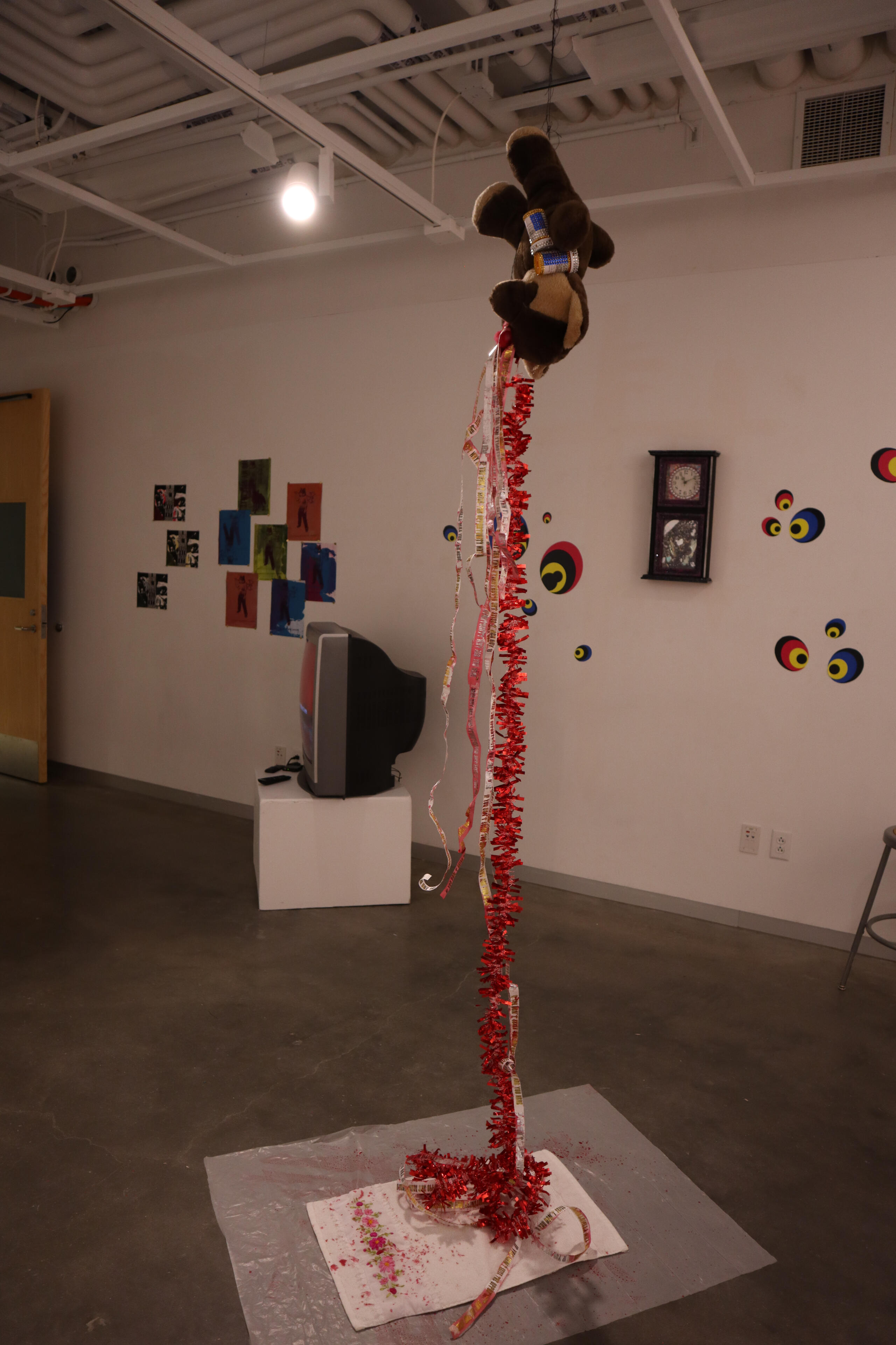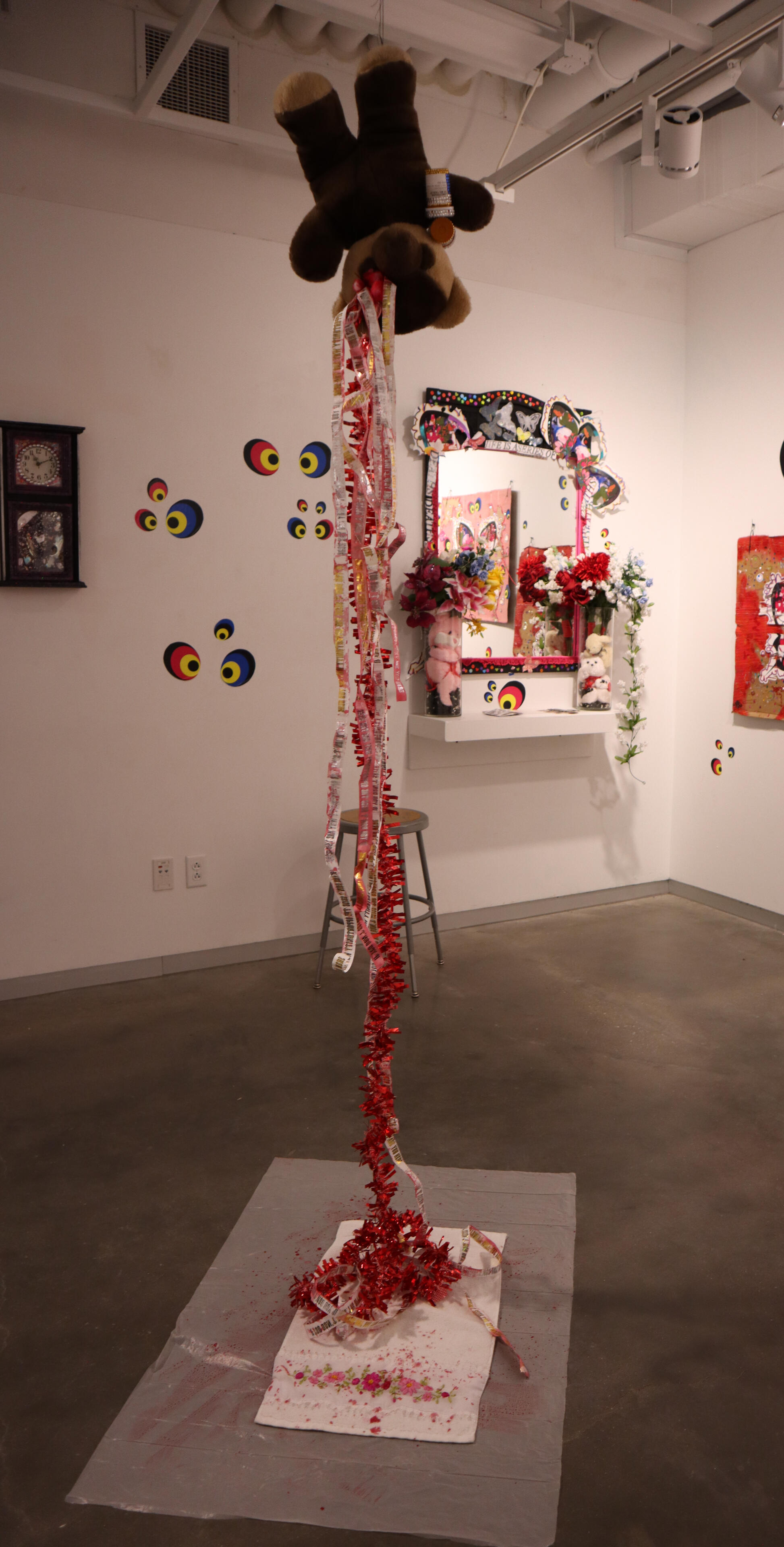 THINGS. I like things. In fact, I love things. Things and stuff and junk and material. At times, I think I am nothing without my things, all of the knickknacks and broken items that the latent hoarding issues in my DNA are too scared to let go of. My world is made up of toys, clothes, paper scraps, bed linens and sentimental ephemera, and defined by the spaces I grew up in. Unrestricted and unmoored due to neglect and confusion in formative years, I found solace and excitement in spaces that weren’t for me. I was far too young to be exploring the forbidden delights of the world wide web in the early 2000’s, but in my defense, the online deviants and misfits in subculture spaces were the only role models I had. I have a passion for perversion and an acute awareness of how easily a mind is warped, for better or worse. And I am also acutely aware that what may be “better” for me is “worse” for someone else–especially when it comes to anything queer, anything odd, anything painful.Let me be clear: I do not seek to besmirch memories, nor am I pretentious enough to act like I am above the materialistic influences of my art. “Ruining childhoods” is trite. Though I may be cynical, often infusing a dry, dark humor and irony into my work, I must insist that everything I do is from a place of passion. I would say “love,” because it sounds cute, but really, that ignores all of the pain, anger, and fear that I honor in my work. Subversion without passion is no better than the shallow gimmicks we are fed from pop culture. Oh, wow, another commentary on corporate greed where we take a beloved cartoon character and twist them into something nasty, something pornographic, something obscene. Shock content is not invalid, but it sure is hard to pull off with integrity. When it comes to subversion, we need to consider the motive. What pushes me to speak of innocence and inappropriateness in the same breath? What compels me to grapple with discomfort and vulnerability, to be so uncouth and scrappy? To put stickers on razorblades, clean up blood with a security blanket, and burn my fingertips on a hot glue gun?My art is fragile. At times, it hurts to display it, because I am fragile, too. Showing my art is akin to slicing open my chest, cracking open my ribs, and letting my guts spill out onto the floor, pink and messy, slick with blood and mucus. It’s hard, painful work for something that ends up so… icky. But healing isn’t pretty, neither is growing and maturing. We don’t talk about the in-between spaces enough, the precarious and disgusting transitions between one stage and another, one life and another. We don’t talk about lying about your age to see 18+ websites; we don’t see the goo of genetic material that the caterpillar melts down into as it metamorphosizes in its chrysalis. When we get older, our love of childish things and whimsy is only permitted with a veil of irony. I have grown-up feelings about my childhood. They retroactively feed the 14-year-old girl who still lives in my heart, giving her permission to feel rage and to destroy her surroundings, to be aroused and unashamed of how her heart pounds while watching music videos and horror movies. I console my past lives to root myself in the current one, learning to be brave and claim the space that I’d been denied for so long. I search for many things in my art. Validation, permission, self-actualization. Affirmation of my life and love, my anxieties and mortality. I search for the sublime in the sleaze that I surround myself with. I search for things to rescue and love, to break, to reconfigure.My art asks: Are you brave enough to like something?