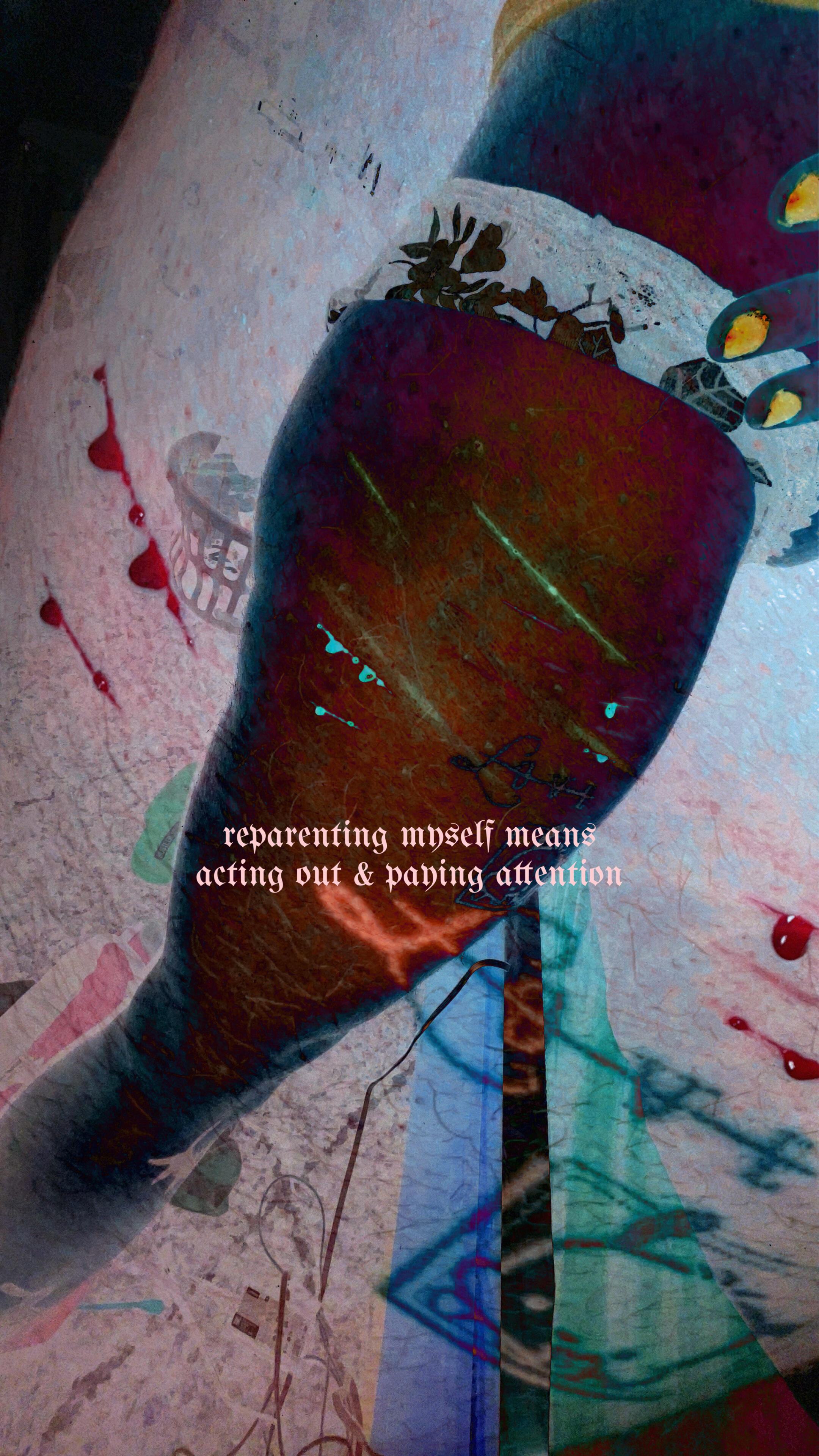 Embry Valentino O’Leary is a trans, genderf██k individual and interdisciplinary artist from the United States. After a childhood in Chicago, Illinois and young adult years in southern Maine, Embry is currently an MFA candidate at the University of Iowa.As a DIY enthusiast and self-proclaimed deviant, Embry's experimental work weaves together installation, ephemera creation, printmaking, assemblage, and digital media. This practice is fluid and precarious, utilizing maximalist aesthetics, recycled materials, wry text, and found commodities to explore themes of impermanence, instability, pleasure, thrill, pain, identity, desire, and discomfort—aspects of life that are intrinsically linked when inhabiting a trans body and living in queer spaces. Some of Embry's favorite materials, objects, and mediums to use are bed linens, stuffed animals, open source video and photo editing software, tape adhesives, hot glue, rhinestones, and instant cameras.Embry can be contacted by emailing evalentinoart@gmail.com.